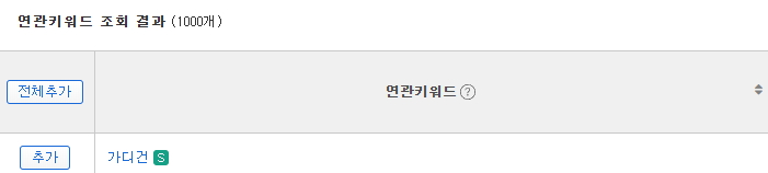 ÀÔ·ÂÇÑ Å°¿öµå¿Í ¿¬°üµÇ´Â Ű¿öµå¸¦ ÃÖ´ë 1,000°³ Ãâ·ÂÇÕ´Ï´Ù.